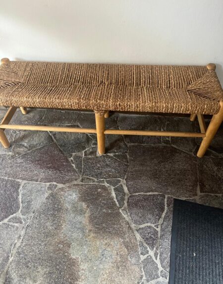 Banca de diseño alargado, elaborada artesanalmente con fibra natural tejida sobre una sólida estructura de madera. Su estilo minimalista y líneas rectas la convierten en una pieza ideal para recibidores, pasillos, terrazas techadas o espacios comerciales que buscan un toque rústico con elegancia natural.